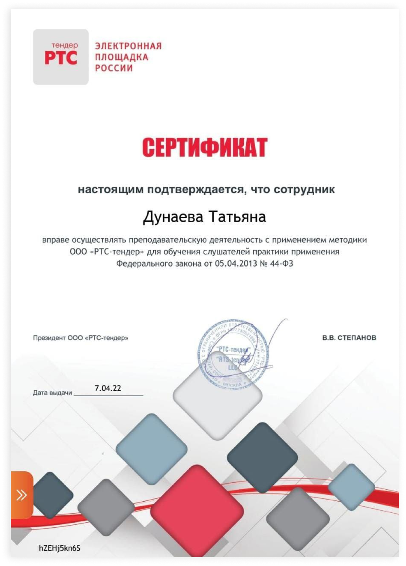 Представитель ЭТП (РТС-тендер (стаж 2,5 года)