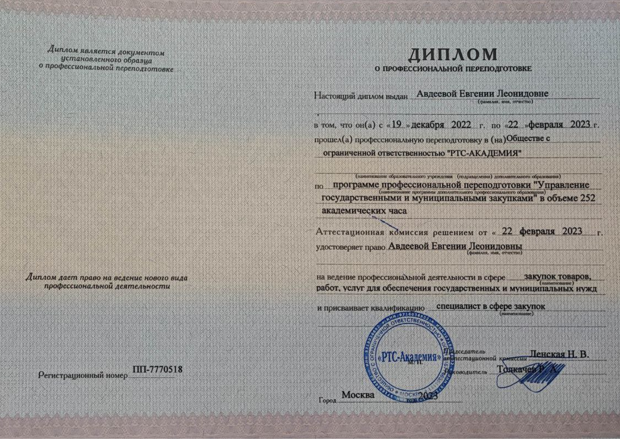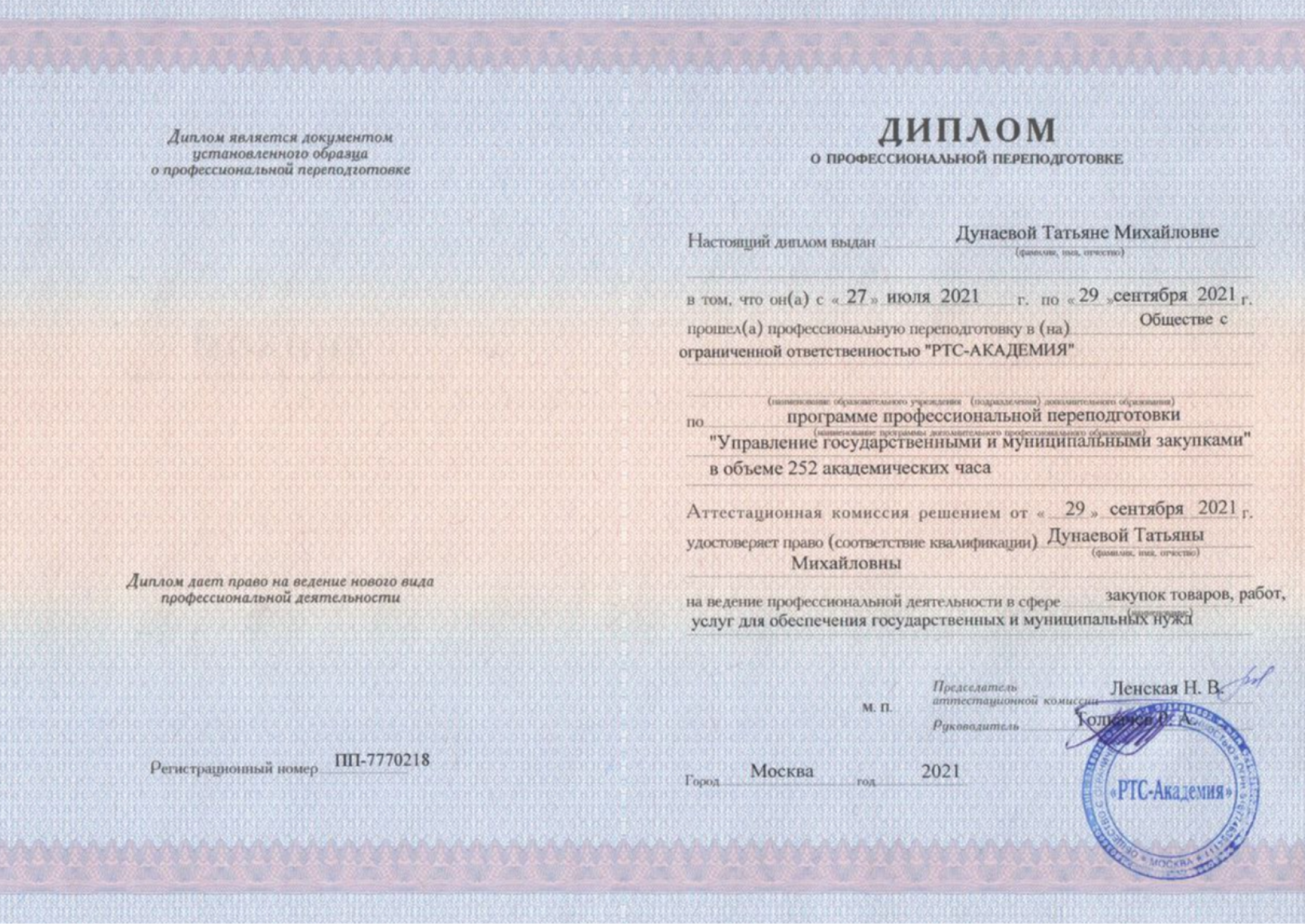 Юрист по контрактной системе в сфере закупок инвестиционной платформы Smally (стаж 2 года)